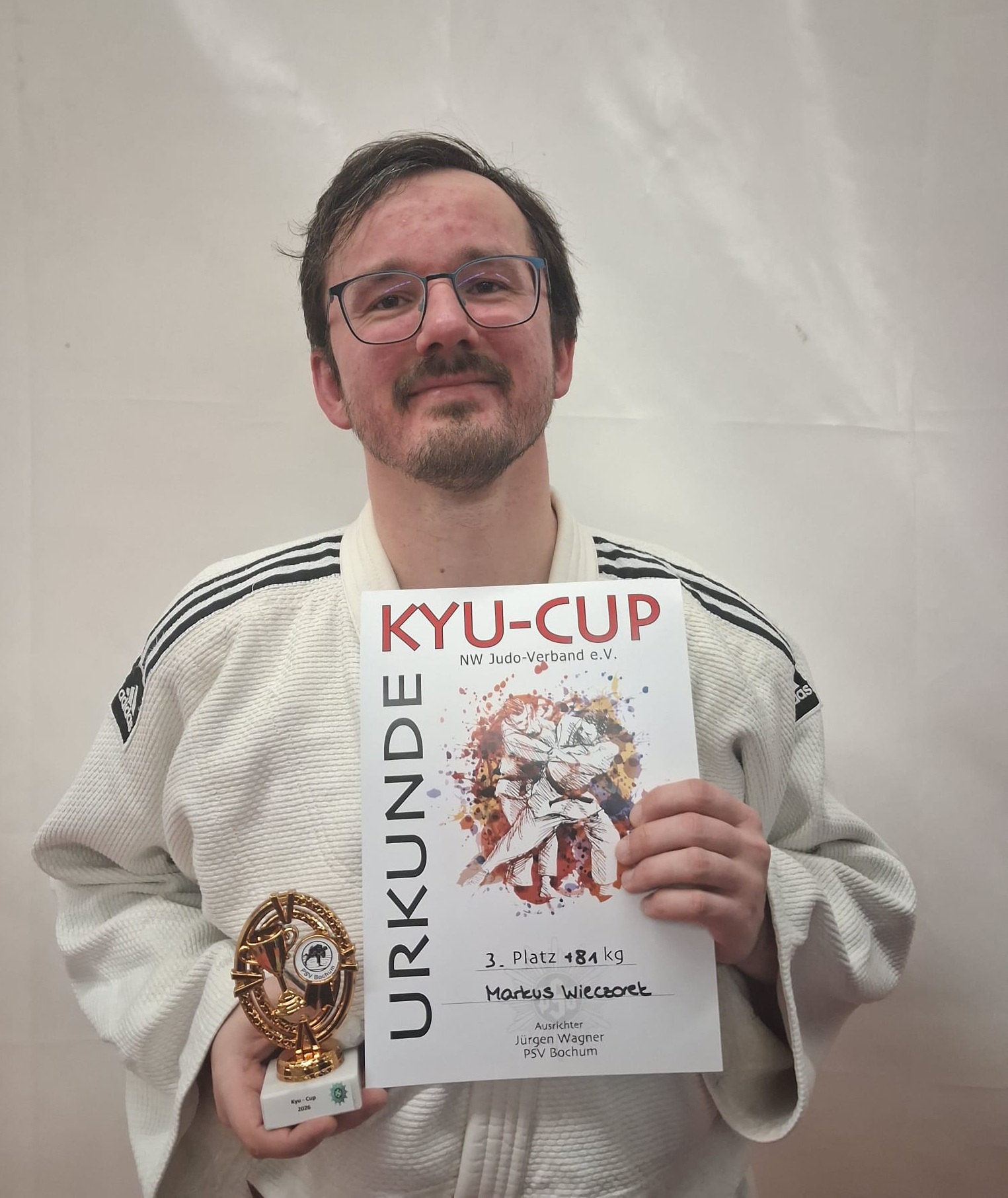 Markus Wieczorek startete in der Klasse bis 87kg. Für ihn war der Kyu-Cup sein erstes Einzelturnier nach seinem Debut 2025 in unserer Männermannschaft. Seinen ersten Kampf konnte er mit Ippon für Ko-uchi-maki-komi entscheiden. In den beiden folgenden Kämpfen musste er sich dann seinen wesentlich jüngeren Gegnern geschlagen geben und konnte das Turnier mit einem soliden dritten Platz beenden.