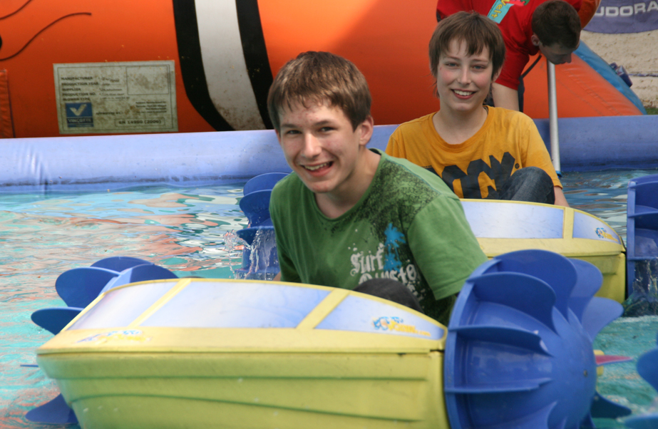 Beim Toben, Klettern, Fußball spielen, Bungee springen, Minigolf spielen und Rutschen hatten alle viel Spaß - die Betreuer sogar manchmal mehr als die Kinder. Durch das schöne Wetter konnten wir auch den Außenbereich ausgiebig nutzen. Nicht nur die Powerpaddler machten den Kindern viel Freude, auch eine kleine Wasserschlacht - bei der Heinrich und Lars (der kleine Eisbär) es bereuten keine Wechselwäsche dabei zu haben - durfte nicht fehlen.